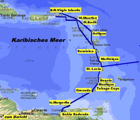 Einen Großteil unserer Zeit in der Karibik haben wir wegen des Ruderschadens notgedrungen im Trockendock verbracht. In den restlichen drei Monaten besuchten wir deshalb vor allem die Inseln, die wir auf unserer ersten Reise auslassen mussten. |