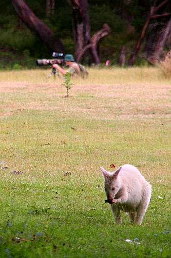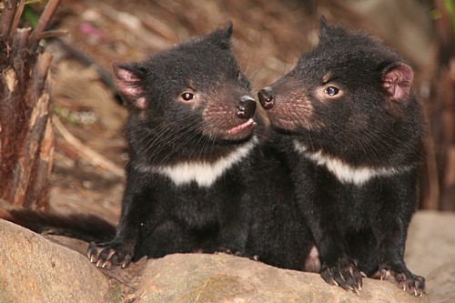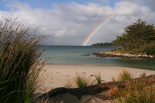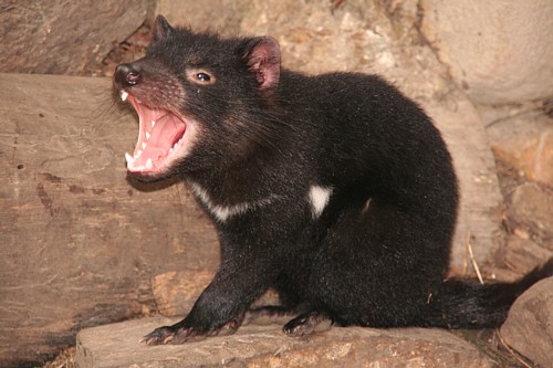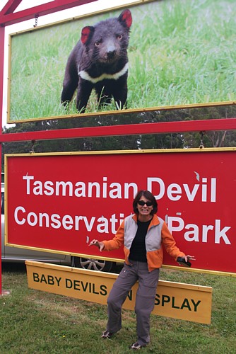 Auf Bruny Island beginnt für uns der Kontakt mit der tasmanischen Wildnis. Am Ende der „Adventure Bay“ in liegt ein ruhiger Öko-Campground. Hier betrat James Cook zum ersten Mal tasmanischen Boden. Und wir erleben hier zum ersten Mal Wallabys in freier Wildbahn. Das Wallaby ist der kleinere Bruder des Känguruhs. Sie kommen so unerwartet nahe, dass man meint, man sei im Zoo. Einige von ihnen haben sogar ein weißes Fell. Keine Albinos, sondern eine seltene Laune der Natur. Das Symboltier Tasmaniens, der tasmanische Teufel, ist nachtaktiv und deshalb leichter in einer der Aufzuchtstationen als im Freien zu sehen. Leute, die schon nachts sein Gebrüll gehört haben, sagen es sei so schauerlich, dass sich einem die Nackenhaare hochstellen.