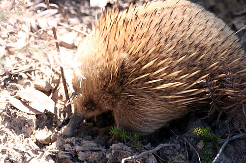 Auf unserer ersten Wanderung treffen wir auf einen Echidna, sozusagen der Igel von Australien. Und eine etwa ein Meter lange schwarze Tigerschlange hat Gott sei Dank noch mehr Angst vor Ute als umgekehrt und verschwindet schnell im Gebüsch.