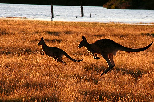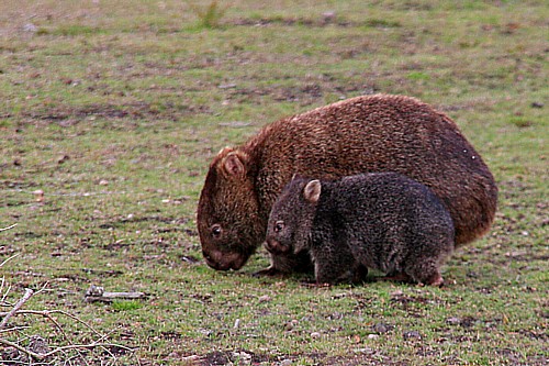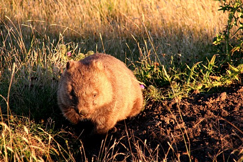 Entlang der Küste sind im ausgedehnten hügeligen Farmland ein paar kleinere Nationalparks erhalten geblieben. Sie sind einzigartige Oasen für die Wildtiere. Unser Geheimtipp ist der Narawntapu NP. Viele Tiere, die auf dem australischen Festland nur nachtaktiv sind tummeln sich hier auch tagsüber. In der Dämmerung wimmelt es auf dem Grasland. Wombats, Wallabys, Kängaruhs. Für uns ist es fast unglaublich wie gering deren Fluchtdistanz ist. Sie haben gelernt, dass ihnen die Zweibeiner hier nichts tun. So konnten Utes bildfüllende Fotos der Wombats auch ohne ein teures Teleobjektiv entstehen.
