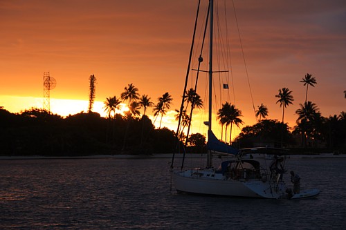 Jetzt sind wir wieder gemeinsam auf . Aber welche Aussicht. Die Ärzte haben dringend zu sechs Monaten intensiver Physiotherapie geraten, um das Bein weitgehend in den alten Zustand zurück zu versetzen. Erst muss es zusammenwachsen, dann Muskelaufbau und die Beweglichkeit wieder herstellen.Segeln ist damit für längere Zeit passé, das Risiko einer erneuten Verletzung zu groß. Mindestens zwei Monate wird Günter mit einer Beinschiene und Krücken auf dem Boot rumhumpeln. So lange ist selbst an Kontinentalflüge nicht zu denken. Zu früh über neue Pläne nachzudenken. Wir werden auf jeden Fall alles tun, um irgendwann unsere Reise wieder unbeschwert fortsetzen zu können. Bis dahin aber werden wir unsere Berichte wohl deutlich reduzieren.