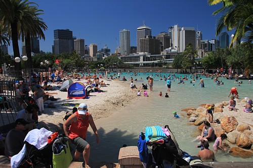Brissie, wie die Stadt liebevoll von den Aussies genannt wird, bietet tropisch relaxtes Lebensgefühl. Trotz der glas- und chromverbrämten Wolkenkratzer überkommt uns nie das Gefühl im unübersichtlichen Großstadt-Dschungel verloren zu gehen. Egal ob wir uns durch die Shopping-Meile der Queen Street Mall bewegen oder am gegenüber liegenden Ufer des Brisbane Rivers durch den attraktiven Erlebnispark schlendern, wir empfinden eine angenehme Behaglichkeit.