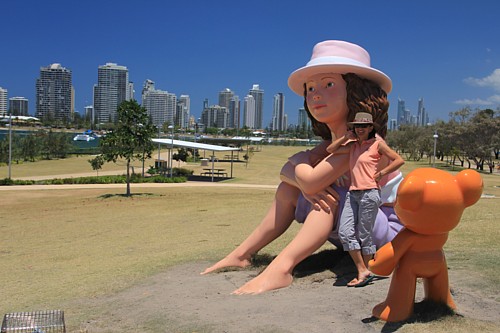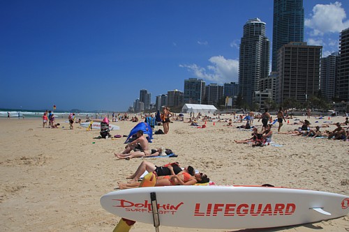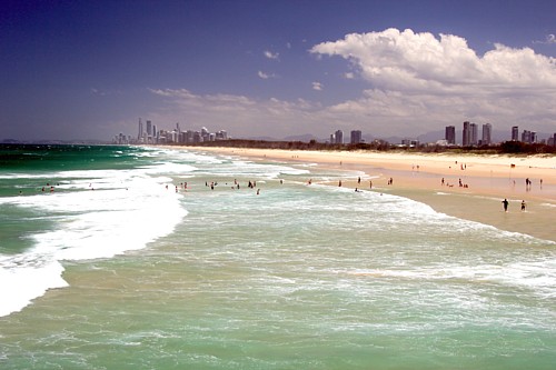 Etwa eine Stunde südlich von Brisbane erstreckt sich die Gold Coast, ein 40 km langer goldener Sandstrand auf den der Surf der Tasman Sea aufläuft. Nirgendwo in Australien gibt es so viele Luxushotels, Ferienapartments und Jugendherbergen, dazu unendlich viele Möglichkeiten für Sport und Unterhaltung wie hier. Allem voran natürlich das Wellenreiten. Es ist „Surfer’s Paradise“ und so heißt auch der zentrale Ort an dieser Küste, dessen steile Entwicklung auf den drei „S“, Sonne, Sand und Surf basiert. Inzwischen stehen die Wolkenkratzer bis an den Strand.