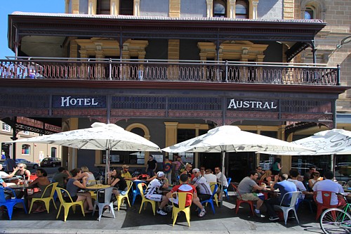 Die Hauptstadt von South Australia wirkt auf uns ein wenig puritanisch und bei weitem nicht so umtriebig wie Sydney oder Brisbane. „Festival City“, so nennt sie sich, ist sehr bemüht dieses Image zu ändern. Nicht nur das WOMAD, das größte World-Musik-Festival soll dazu beitragen. Während unseres Aufenthalts findet gerade die „Santos Tour Down Under“ statt, eine Art australische „Mini - Tour de France“, in dessen Umfeld Heerscharen von radelnden Amateuren die Stadt bevölkern.