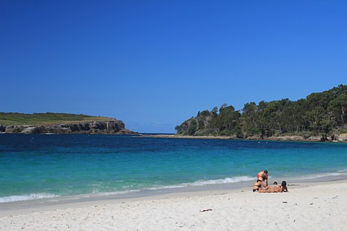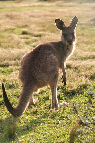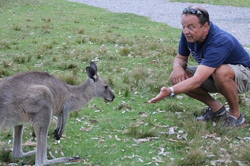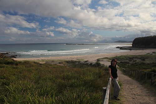 Wenig besuchte Buchten wechseln sich mit breiten Flussmündungen und den grünen Oasen kleiner Nationalparks ab. Besonders gut gefällt es uns in der Pretty Bay, einer abseits vom Touristenstrom gelegenen, von Felsen gerahmten kleinen Sandbucht im Murramarang NP, wo die Känguruhs kaum Scheu vor den Menschen zeigen.