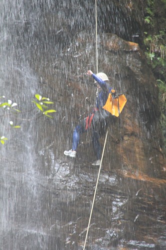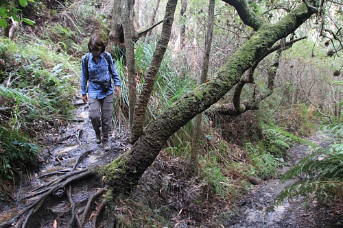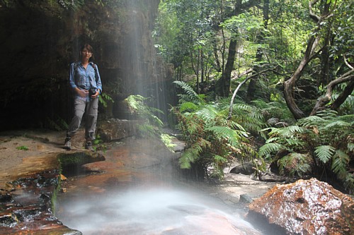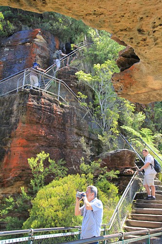Von Blackheath, über in den Fels geschlagene Stufen, steil hinab zum Bridal Veil Fall. Eine Dusche unter einem der vielen kleinen Rinnsale, die über die überhängenden Felsen sprühen, ist garantiert.