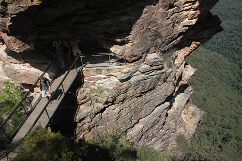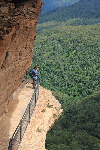 Der National Pass Walk zu den Wentworth Falls und zurück über den Under- und Uppercliffe Walk. Der Pfad führt quer durch die senkrecht abfallenden Felswände. Er erinnert uns an den Alpini-Steig in den Dolomiten.
