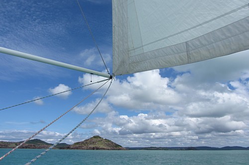 Von hier aus nehmen wir direkten Kurs auf Cape Wessel und weiter bis zum Eingang in den van Diemen Golf. Die meisten Segler passieren den Carpentaria Golf über eine südlichere Route von Weipa bis Gove Harbour, und dort durch das „Hole in the Wall“, eine Art natürlicher „Kanal von Korinth“, allerdings mit viel Gezeitenströmung. Weiter geht’s dann gemütlich in Lee entlang der Küste von Arnhem Land. Unsere Route spart uns ca. eine Woche „day hopping“.